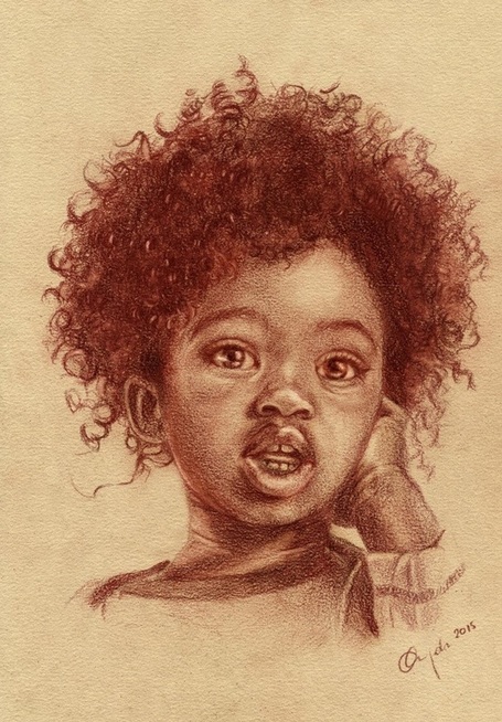 Kinderportrait, Rötel auf cremefarbenem Papier